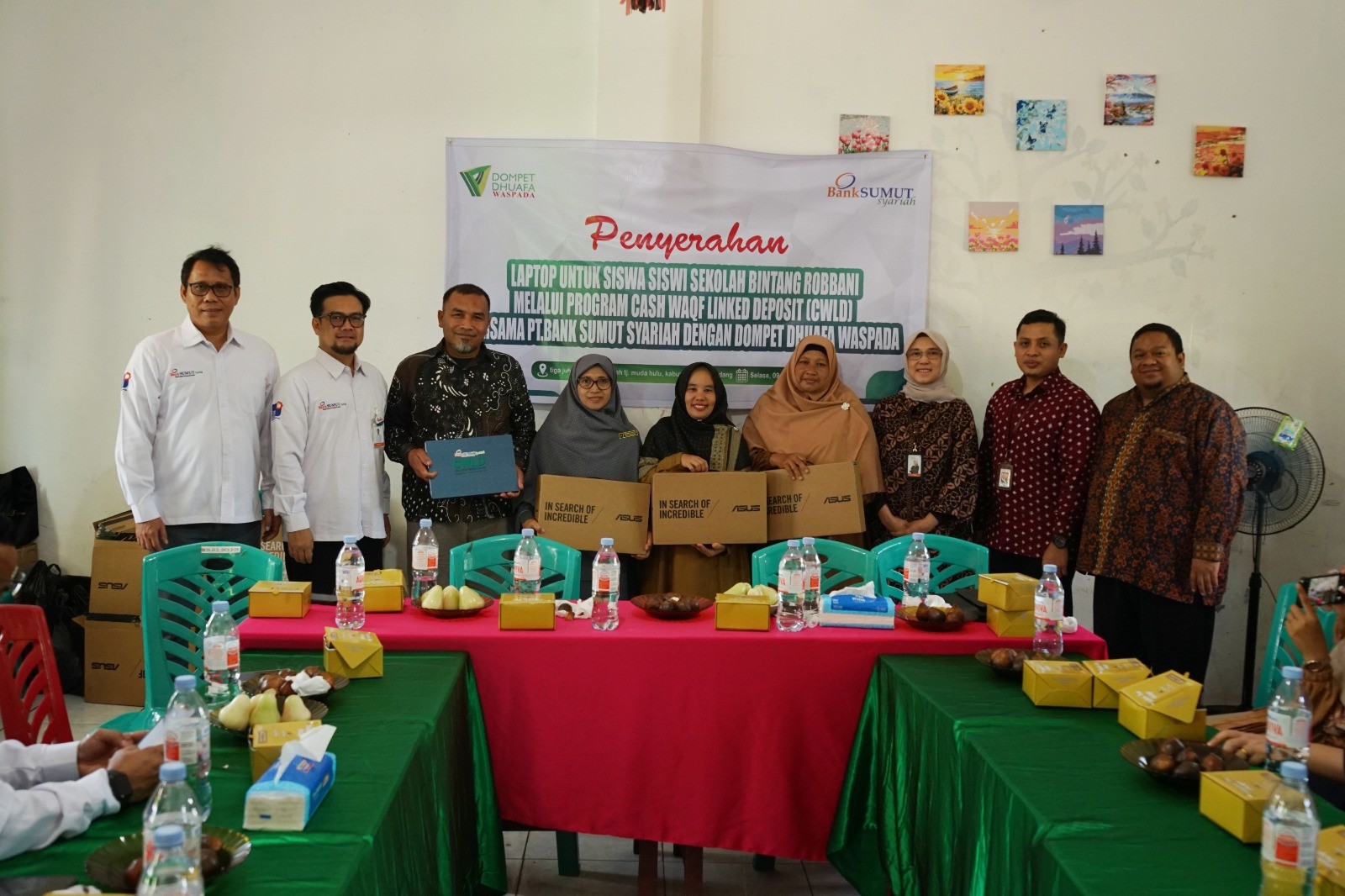 TRABASNEWS – Bank Sumut Syariah bersama Dompet Dhuafa Waspada menyalurkan bantuan laptop kepada Sekolah Bintang Rabbani melalui Program Cash Wakaf Link Deposit (CWLD), Selasa (9/12).