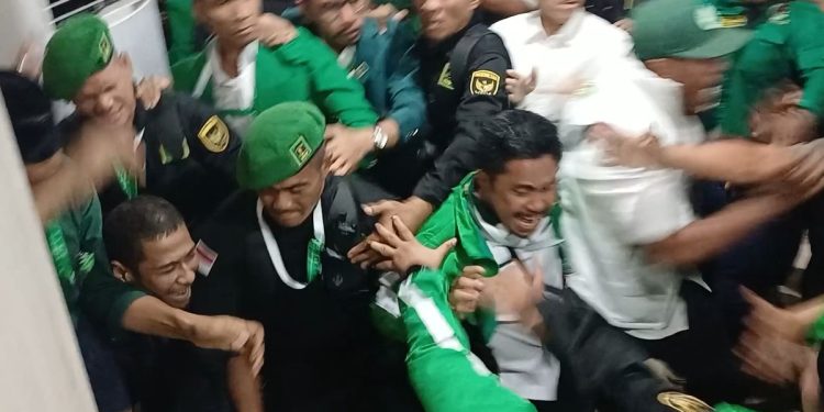 Pantauan di lokasi menunjukkan, peserta Muktamar terpecah menjadi dua kubu dengan teriakan yang saling bersahutan. Satu kelompok meneriakkan dukungan kepada Mardiono dengan seruan “Lanjutkan”, sementara kelompok lain menyerukan “Perubahan”.