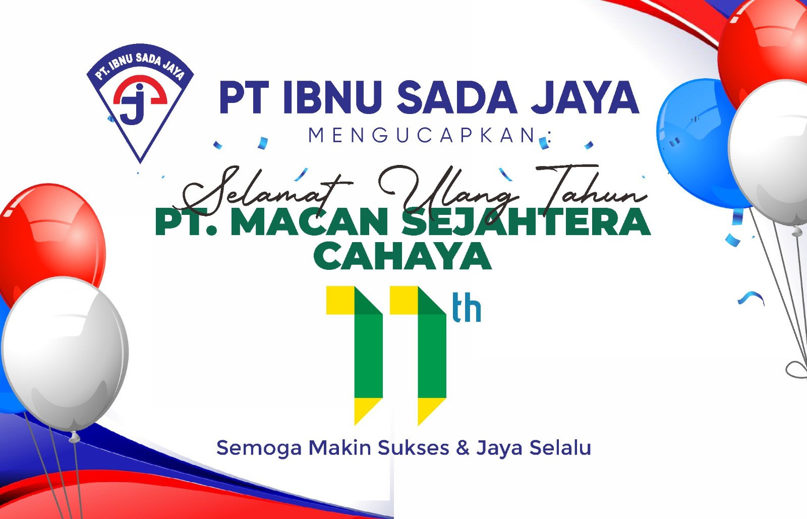 TRABASNEWSn– PT Ibnu Sada Jaya yang merupakan salah satu anggota dari Macan Group menyampaikan ucapan selamat atas Hari Ulang Tahun (HUT) ke-11 PT Macan Sejahtera Cahaya. Momentum bertambahnya usia ini diharapkan menjadi tonggak penting bagi perusahaan untuk terus berkembang dan memperkuat kemitraan di berbagai sektor.
