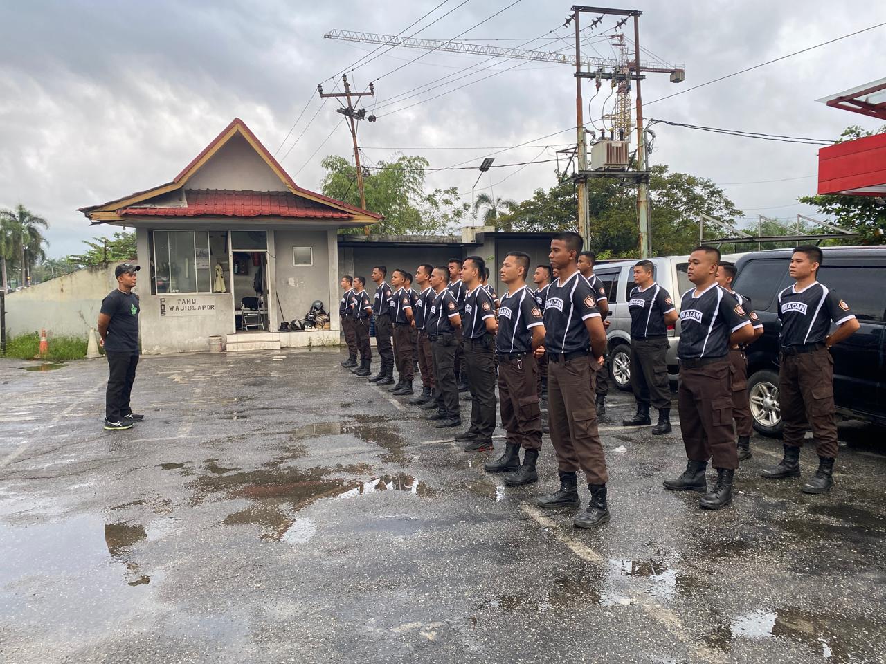 TRABASNEWS — PT Macan Sejahtera Cahaya menggelar kegiatan Refreshing Training bagi anggota satuan pengamanan (Satpam) yang bertugas di Objek Alfa Scorpii, Pekanbaru, Minggu (18/1/2026).