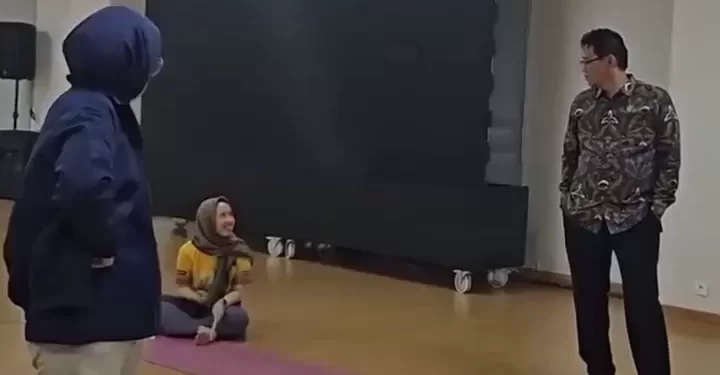 Momen menarik terjadi ketika Purbaya berhenti di salah satu ruangan dan melihat seorang pegawai wanita tengah melakukan gerakan pound fit dengan mengenakan pakaian olahraga berwarna kuning. Meski situasi sempat terasa canggung, Purbaya justru menanggapinya dengan senyuman, menyapa pegawai tersebut dengan santai.