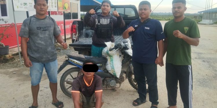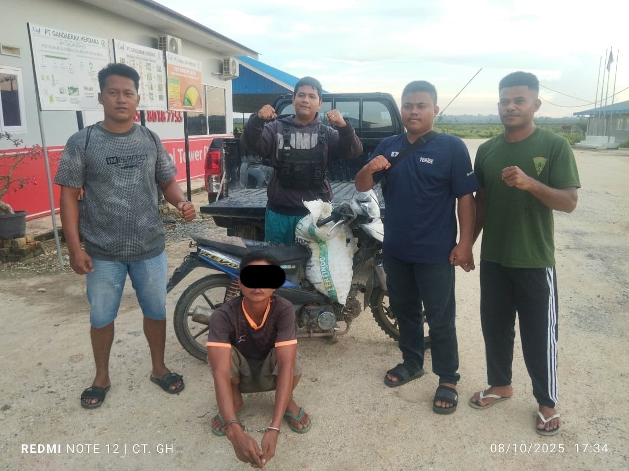 Kasat Pam PT Macan Sejahtera Cahaya, M. Adri, mengungkapkan bahwa pelaku diketahui merupakan orang tak dikenal (OTK) yang diamankan saat sedang membawa satu karung berisi brondolan sawit dengan estimasi berat mencapai 30 kilogram.